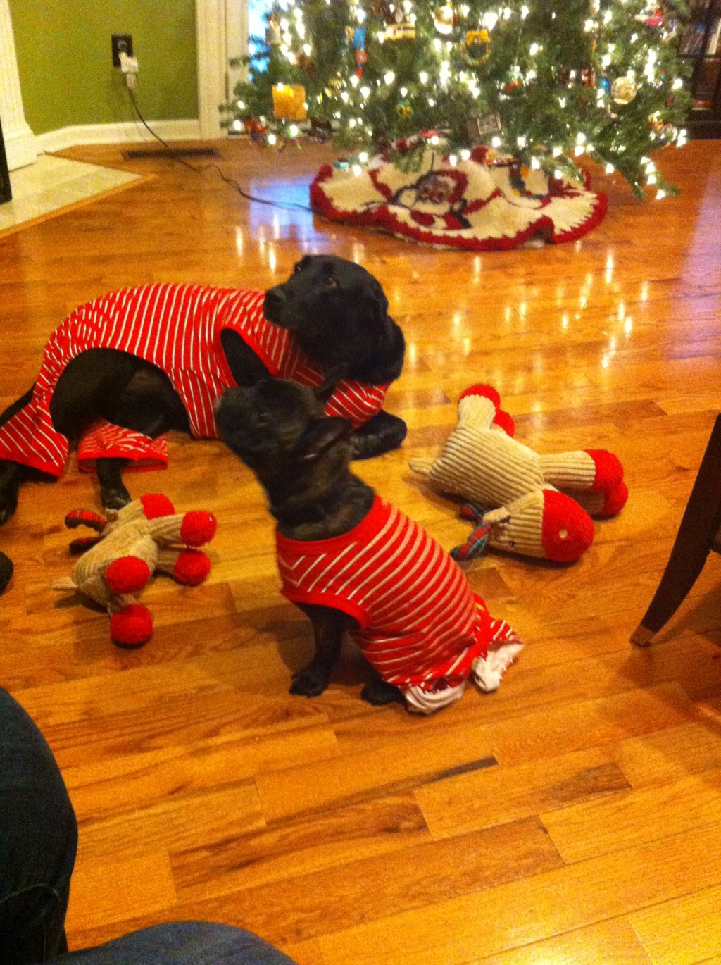 1. I veto the idea of ugly sweaters. We struggled enough as it was getting the pjs on them.
